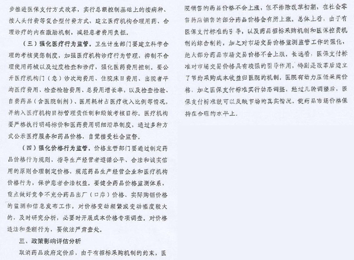 取消藥品政府定價,通過醫(yī)??刭M和招標(biāo)采購,讓藥品實際價格由市場競爭形成。從2015年1月1日起。取消原政府制定的最高零售限價或出廠價格。